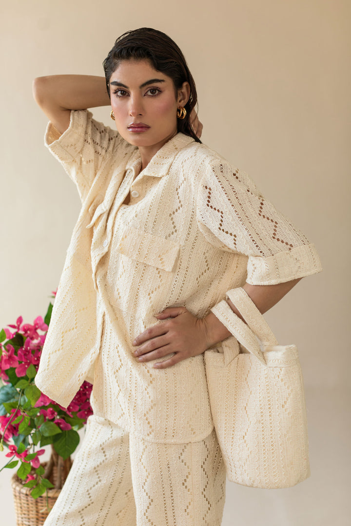 A classic 100% cotton croché shirt featuring a delicate zigzag weave, fully lined